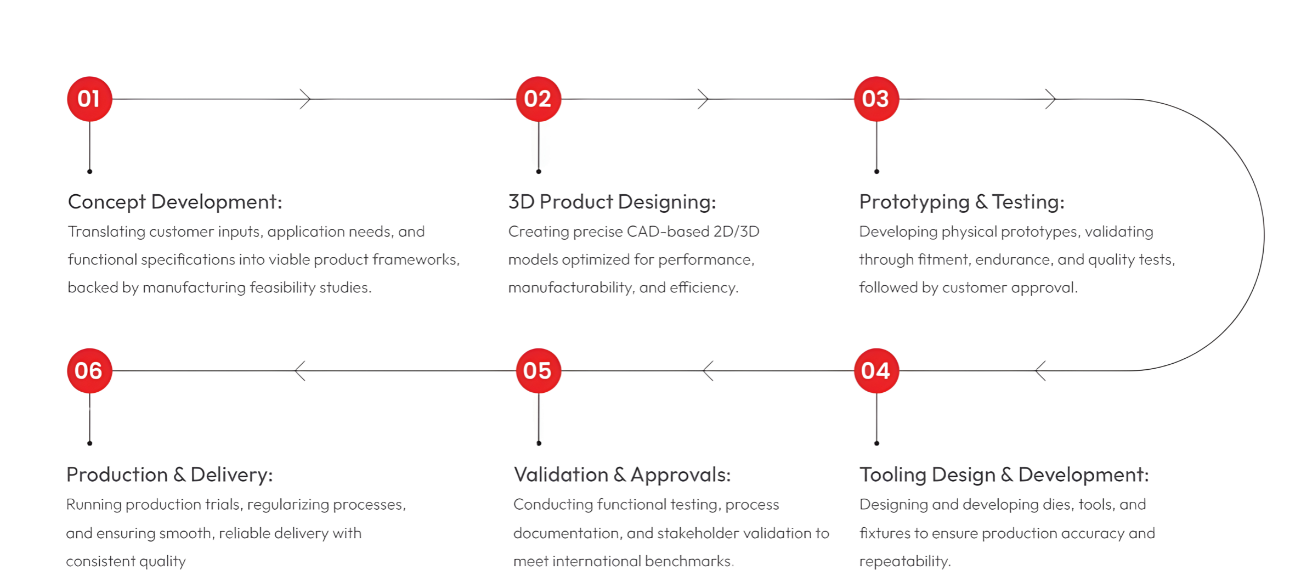 Developing physical prototypes, validating through fitment, endurance and quality tests, followed by customer approval.( Conducting functional testing)